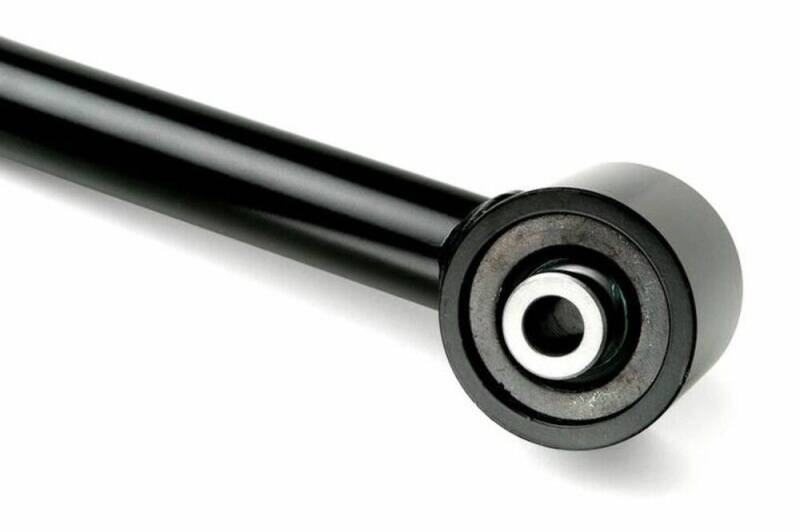 Adjustable Front Track Bar Correct front axle centering on your lifted Jeep Wrangler TJ or LJ by installing a JKS Adjustable Track Bar. For use with Jeeps with a 4" plus lift, JKS front track bars feature rubber and poly bushings to isolate noise and vibration. CNC bent DOM tubing is powder coated and zinc coated. Vehicles with Dana 30 axle, aftermarket diff. cover and less than 3.0 in. lift may require bump stop adjustment to prevent interference. Fits vehicles with more than 4" Lift Superior quality replacement for original fixed length panhard rod Variable length design properly aligns axle housing with chassis and prevents undue stress on related components Fine adjustment threads enable ultra precise axle positioning Extremely strong DOM tube construction utilizes OE bends for correct geometry and clearance