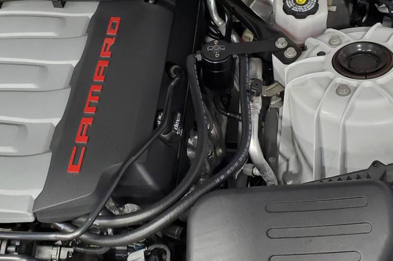 Oil Separator 3.0 Driver Side During the process of venting crankcase pressure back through your intake track, large amounts of oil, in the form of vapors can gather/accumulate in your intake tube, intake manifold runners and even dilute your gas, lowering its octane level. This happens on all engines and is even worse with forced inducted vehicles (supercharged and turbocharged) as crankcase pressures are increased. To combat this, we have developed an oil separator of our own design. Milled from solid billet aluminum this is a rock-solid piece. It has a knurled tank base for easy removal to drain the spent oil and an O-ring seal to prevent any leaks.