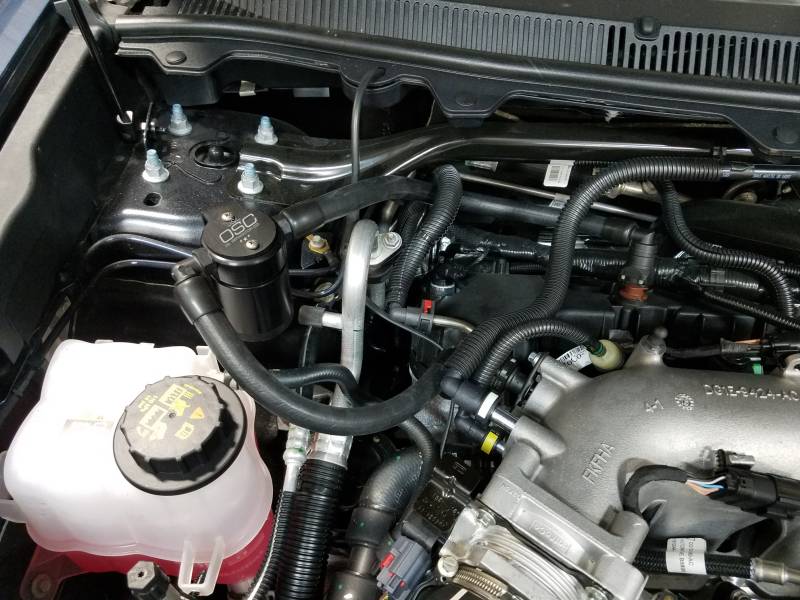 Oil Separator 3.0 Passenger Side During the process of venting crankcase pressure back through your intake track, large amounts of oil, in the form of vapors can gather/accumulate in your intake tube, intake manifold runners and even dilute your gas, lowering its octane level. This happens on all engines and is even worse with forced inducted vehicles (supercharged and turbocharged) as crankcase pressures are increased. To combat this, we have developed an oil separator of our own design. Milled from solid billet aluminum this is a rock-solid piece. It has a knurled tank base for easy removal to drain the spent oil and an O-ring seal to prevent any leaks.