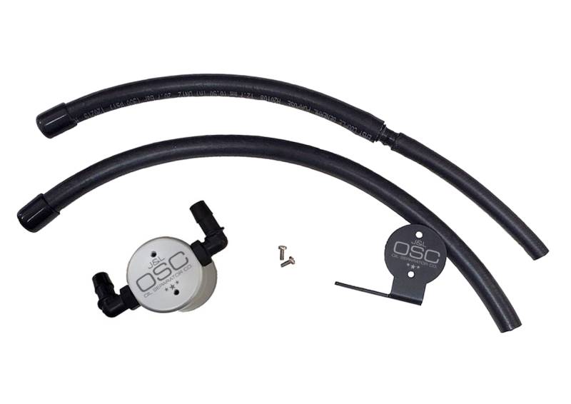 Oil Separator 3.0 Driver Side During the process of venting crankcase pressure back through your intake track, large amounts of oil, in the form of vapors can gather/accumulate in your intake tube, intake manifold runners and even dilute your gas, lowering its octane level. This happens on all engines and is even worse with forced inducted vehicles (supercharged and turbocharged) as crankcase pressures are increased. To combat this, we have developed an oil separator of our own design. Milled from solid billet aluminum this is a rock-solid piece. It has a knurled tank base for easy removal to drain the spent oil and an O-ring seal to prevent any leaks.