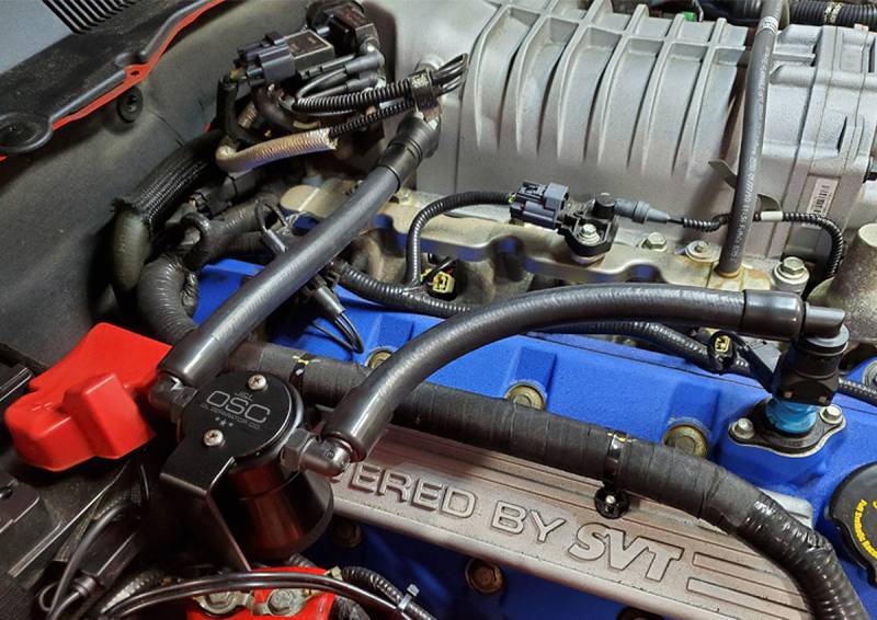 Oil Separator 3.0 Passenger Side During the process of venting crankcase pressure back through your intake track, large amounts of oil, in the form of vapors can gather/accumulate in your intake tube, intake manifold runners and even dilute your gas, lowering its octane level. This happens on all engines and is even worse with forced inducted vehicles (supercharged and turbocharged) as crankcase pressures are increased. To combat this, we have developed an oil separator of our own design. Milled from solid billet aluminum this is a rock-solid piece. It has a knurled tank base for easy removal to drain the spent oil and an O-ring seal to prevent any leaks.