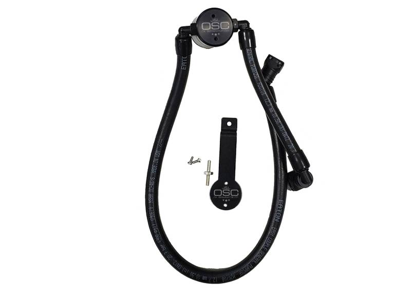 Oil Separator 3.0 Passenger Side During the process of venting crankcase pressure back through your intake track, large amounts of oil, in the form of vapors can gather/accumulate in your intake tube, intake manifold runners and even dilute your gas, lowering its octane level. This happens on all engines and is even worse with forced inducted vehicles (supercharged and turbocharged) as crankcase pressures are increased. To combat this, we have developed an oil separator of our own design. Milled from solid billet aluminum this is a rock-solid piece. It has a knurled tank base for easy removal to drain the spent oil and an O-ring seal to prevent any leaks.