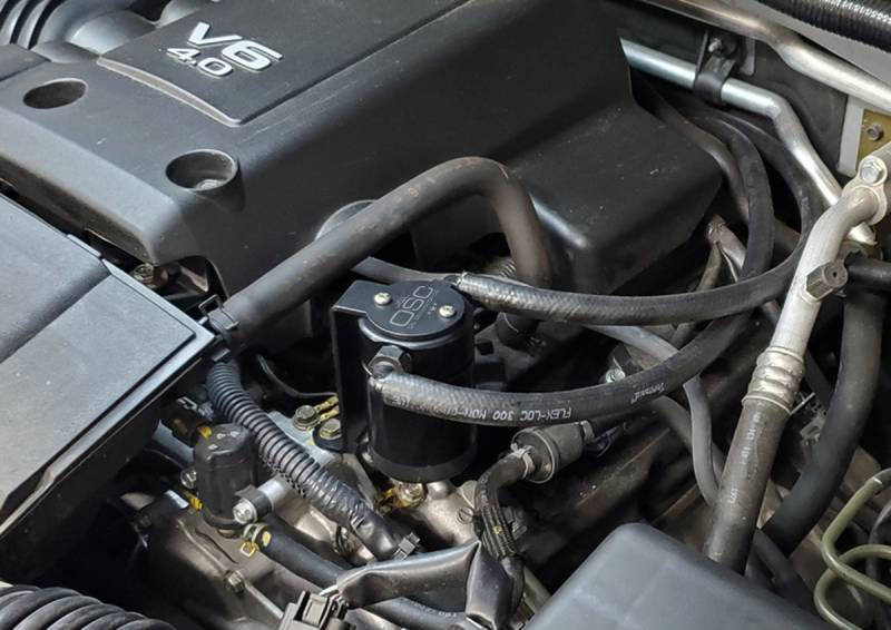 Oil Separator 3.0 Passenger Side During the process of venting crankcase pressure back through your intake track, large amounts of oil, in the form of vapors can gather/accumulate in your intake tube, intake manifold runners and even dilute your gas, lowering its octane level. This happens on all engines and is even worse with forced inducted vehicles (supercharged and turbocharged) as crankcase pressures are increased. To combat this, we have developed an oil separator of our own design. Milled from solid billet aluminum this is a rock-solid piece. It has a knurled tank base for easy removal to drain the spent oil and an O-ring seal to prevent any leaks.