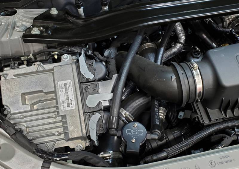 Oil Separator 3.0 Passenger Side During the process of venting crankcase pressure back through your intake track, large amounts of oil, in the form of vapors can gather/accumulate in your intake tube, intake manifold runners and even dilute your gas, lowering its octane level. This happens on all engines and is even worse with forced inducted vehicles (supercharged and turbocharged) as crankcase pressures are increased. To combat this, we have developed an oil separator of our own design. Milled from solid billet aluminum this is a rock-solid piece. It has a knurled tank base for easy removal to drain the spent oil and an O-ring seal to prevent any leaks.