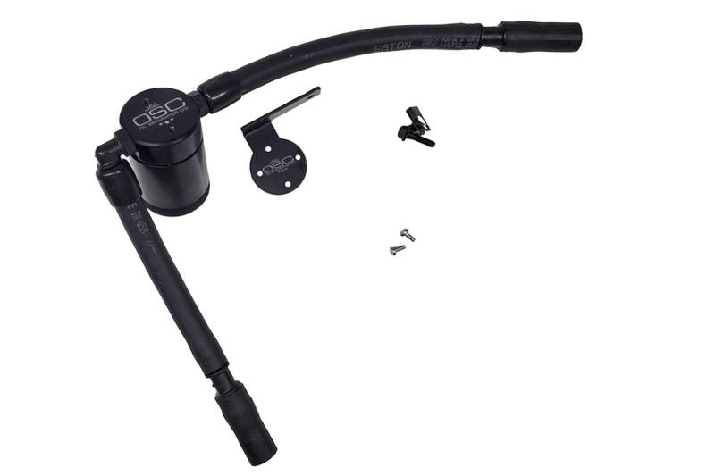 Oil Separator 3.0 Passenger Side During the process of venting crankcase pressure back through your intake track, large amounts of oil, in the form of vapors can gather/accumulate in your intake tube, intake manifold runners and even dilute your gas, lowering its octane level. This happens on all engines and is even worse with forced inducted vehicles (supercharged and turbocharged) as crankcase pressures are increased. To combat this, we have developed an oil separator of our own design. Milled from solid billet aluminum this is a rock-solid piece. It has a knurled tank base for easy removal to drain the spent oil and an O-ring seal to prevent any leaks.