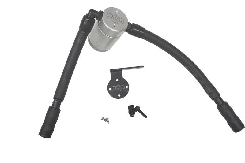 Oil Separator 3.0 Passenger Side During the process of venting crankcase pressure back through your intake track, large amounts of oil, in the form of vapors can gather/accumulate in your intake tube, intake manifold runners and even dilute your gas, lowering its octane level. This happens on all engines and is even worse with forced inducted vehicles (supercharged and turbocharged) as crankcase pressures are increased. To combat this, we have developed an oil separator of our own design. Milled from solid billet aluminum this is a rock-solid piece. It has a knurled tank base for easy removal to drain the spent oil and an O-ring seal to prevent any leaks.