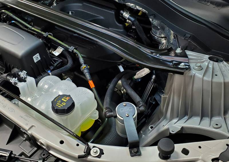 Oil Separator 3.0 Driver Side During the process of venting crankcase pressure back through your intake track, large amounts of oil, in the form of vapors can gather/accumulate in your intake tube, intake manifold runners and even dilute your gas, lowering its octane level. This happens on all engines and is even worse with forced inducted vehicles (supercharged and turbocharged) as crankcase pressures are increased. To combat this, we have developed an oil separator of our own design. Milled from solid billet aluminum this is a rock-solid piece. It has a knurled tank base for easy removal to drain the spent oil and an O-ring seal to prevent any leaks.