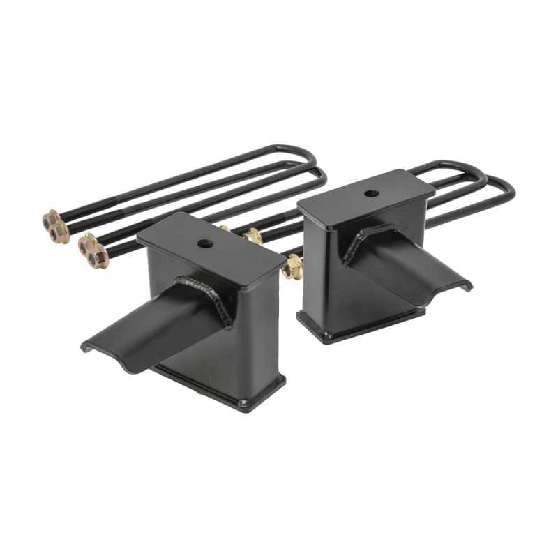 ReadyLIFT OEM-style rear tapered block kits are available for 2017-2023 Ford Super Duty SRW F250/F350 model specific applications. These new 6.5" Rear Tapered Block Kits include two (2) Rear Blocks, four (4) E-Coated U-Bolts, and eight (8) Nuts and Washers. Based on OEM designs and never made out of lightweight extrusions our 6.5" 2017-2023 Ford F250/F350 Super Duty Blocks have Integrated OEM Style Bump Stops. ReadyLIFT Block Kits will put a slight rake back in your truck for hauling or towing and are designed to work with your ReadyLIFT Suspension Leveling Kit. In fact, these blocks are the ideal Tow Package upgrade for not only for stock height vehicles but lifted or leveled trucks too! Like all ReadyLIFT products, these block kits come with our Limited Lifetime Warranty. Note: 26-2765 6.5" block is for use on 2017-2023 Ford F250 / F350 Super Duty 2WD/4WD trucks with 1-piece driveshaft. Lift height will vary depending on what factory block your truck has. Note: Fits Single Rear Wheel Trucks ONLY -- Not Dual Rear Wheel Configurations NOTE: The lift blocks in this kit are not designed to work with aftermarket or factory add-on air spring/load leveling kits that attach to the bump stop tangs. Use of this type of airbag system will void all block warranties and can cause failure of the block bump stop tang.
