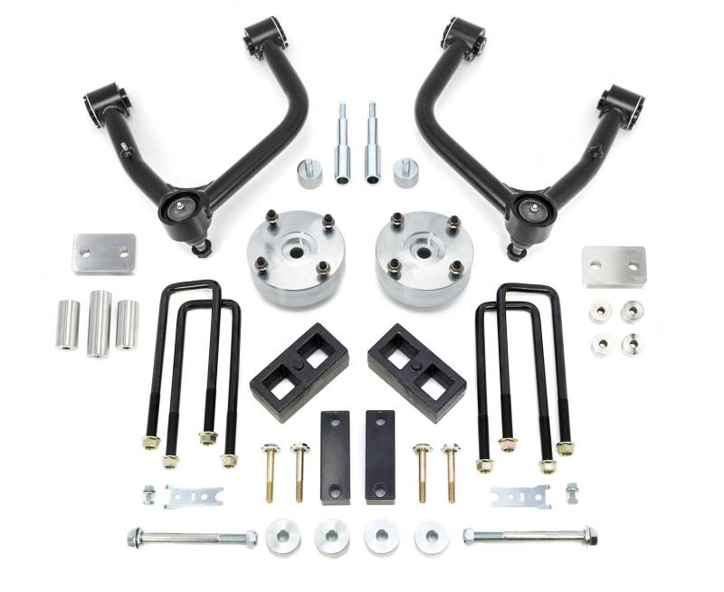 The ReadyLIFT TRD Pro Plus 2" Lift Kit is now available for 2015-2021 Toyota Tundra TRD Pro Trucks. This kit offers a 2" front lift to the TRD Pro suspension, which already comes with a 2" lift from the factory, resulting in a total 4" lift height for standard Tundra trucks. It's specifically designed for use on 2015-2021 Tundra TRD Pro trucks with Bilstein/Fox TRD Pro shocks. The kit includes DOM steel tube upper Control Arms with extended duty ball joints and TCT urethane bushings to retain OEM ball joint angles and provide strut/coil over clearance during suspension droop cycling. Achieving the 2" front lift is made possible with proprietary CNC machined billet Aluminum top hat replacements, which do not alter the existing 2" lift from the factory. The kit also includes differential drop spacers, skid plate spacers with new hardware, rear shock extensions, and front bump stop extensions. Furthermore, OEM style 2.0" rear lift blocks and new U-bolts are included to level the back of Tundra trucks. Shock stem extensions are provided to retain the use of the factory Bilstein/Fox rear shocks without altering their length. In addition to these components, the kit comes with front sway bar frame mount spacers, skid plate spacers compatible with the factory TRD Pro skid plate, and brake line bracket extensions. Installation is straightforward, taking approximately 3 hours, and it maintains OEM alignment geometry figures. Notably, this system requires no cutting or strut spring pre-loading and utilizes heavy-duty hardware for quick and safe installation. Comprehensive instructions are included with every kit.