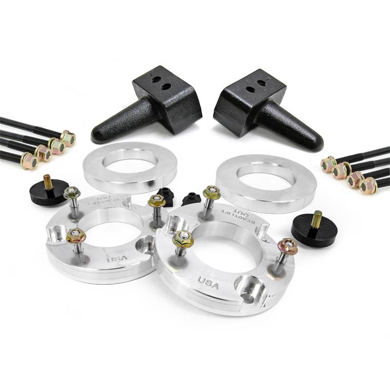 ReadyLIFT is proud to offer an all-new billet Aluminum construction 2.5" SST Lift Kit developed exclusively for the all-new 2017-2020 Ford F-150 Raptor. This system provides a front-back lift solution for those who want a little more than what a leveling kit offers. For the newest Ford Raptor trucks, we deployed our renowned, indestructible billet coil-over spacer technology to optimize suspension articulation while retaining the factory travel specifications. The 69-2755 Raptor 2.5" SST Lift kit has been specifically engineered to bolt right onto the factory Internal Bypass Coil-overs. We also include a machined billet spring pre-load spacer that aids in generating the 2.5 inches of front lift without exceeding the manufacturer's maximum recommendation for droop and compression. The CNC machined billet construction adapts perfectly to the Raptor suspension and features a durable finish matching the factory coil-overs. This kit also includes our Ford-specific OEM-style cast iron rear lift blocks that are 4 inches tall and replace the factory block. This kit also includes important control arm bump stops to limit over-droop while being aggressive in off-road environments. These new Raptor systems are the epitome of ReadyLIFT quality, providing a quality factory ride, awesome stance and top-quality rugged construction worthy of this new high-performance pickup.