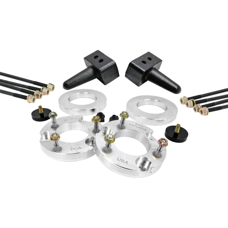 ReadyLIFT is proud to offer an all-new billet Aluminum construction 2.5" SST Lift Kit developed exclusively for the all-new 2017-2020 Ford F-150 Raptor. This system provides a front-back lift solution for those who want a little more than what a leveling kit offers. For the newest Ford Raptor trucks, we deployed our renowned, indestructible billet coil-over spacer technology to optimize suspension articulation while retaining the factory travel specifications. The 69-2755 Raptor 2.5" SST Lift kit has been specifically engineered to bolt right onto the factory Internal Bypass Coil-overs. We also include a machined billet spring pre-load spacer that aids in generating the 2.5 inches of front lift without exceeding the manufacturer's maximum recommendation for droop and compression. The CNC machined billet construction adapts perfectly to the Raptor suspension and features a durable finish matching the factory coil-overs. This kit also includes our Ford-specific OEM-style cast iron rear lift blocks that are 4 inches tall and replace the factory block. This kit also includes important control arm bump stops to limit over-droop while being aggressive in off-road environments. These new Raptor systems are the epitome of ReadyLIFT quality, providing a quality factory ride, awesome stance and top-quality rugged construction worthy of this new high-performance pickup.