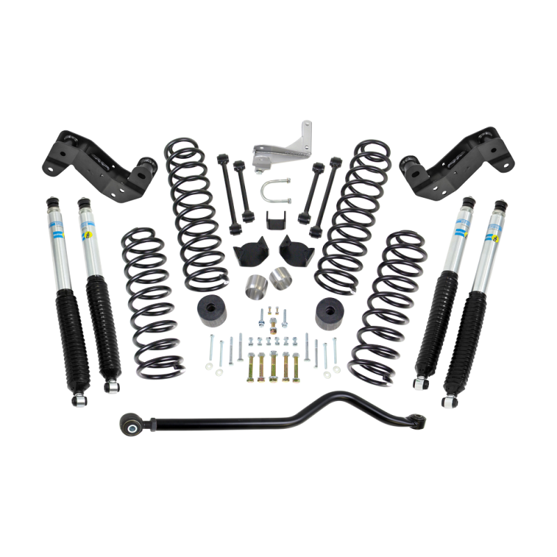 ReadyLIFT is proud to offer the most complete 4" Coil Spring Lift kit for the 2007-2018 Jeep Wrangler JK! This kit offers four (4) precision crafted coil springs to ensure unsurpassed on-road manners as well as increased off-road capability. Kit 69-6404 includes four (4) replacement front and rear sway bar end links, rear heavy-duty track bar relocation bracket, adjustable front track bar for axle positioning, new bump stops and bump stop pads to ensure the correct articulation of your suspension. The ReadyLIFT 69-6404 kit also includes four (4) Bilstein 5100 Series shocks and our new front caster correction brackets to help correct the front geometry after lifting. The ReadyLIFT 4.0" Coil Spring Lift Kit lifts your Jeep JK Wrangler 4.0" in front and 3.0" in the rear for a lifted and level stance suitable for installation of 35" tall off-road tires. With the use of "flat fenders" you can install 37" tall tires. This kit allows you to confidently take your Jeep anywhere you want, on or off road, without sacrificing a quality ride or handling characteristics. The increased ground clearance provides many more off road opportunities than with a stock suspension along with the ability to install larger wheel and tires for the truly great lifted off road appearance! NOTE: 2012-UP vehicles may require front exhaust spacers. This kit includes stainless steel exhaust spacers for 2012-up Jeeps for off road use.