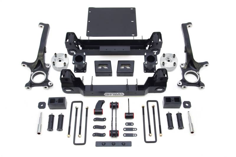 TRD Pro Plus 6! ReadyLIFT 6" Complete Lift Kit for 2015-2021 Toyota Tundra TRD Pro Trucks! ReadyLIFT delivers a great new Pro Plus 6 lift kit that will provide 6" of front lift to TRD Pro Tundra trucks that come factory with 2" of front lift. That equals the same height as our 8" lift kit on a standard Tundra. And even better, this kit allows you to retain use of the factory Bilstein/Fox coil-overs and reservoir rear shocks! That's right, this great system retains use of ALL of the factory TRD Pro suspension components. Note: This system will only work with factory 20" wheels - will not work with some factory 18" wheels. Aftermarket wheels okay with correct offset. Note: For use only on 2015-2021 Tundra TRD Pro w/ Bilstein/Fox coilover shocks. Note: Will not work with the TRD rear swar bar option.\nNote: Cannot use the factory front skid plate.\nThis 44-5860 Pro Plus 6 inch lift kit for Tundra trucks is packed full of the same great features found in our standard 8" lift kit! Starting with our ultra strong laser cut, CNV bent, welded and boxed sub frame drop assemblies that not only keeps your suspension geometry where it is supposed to be, but also increases your ground clearance 2" over the competition! Our unique and precision-designed iron knuckles feature CNC machining to guarantee precise fit while allowing for retention of the factory tie rods - that means no cutting or replacing your tie rods - ever! The 6 inches of lift is created by our innovative and industry-leading offset top mount spacer design along with the addition of a CNC machined billet Aluminum strut top hat replacement. These strong steel spacers attach to the factory Bilstein/Fox coilover/strut - resulting in a factory ride - while positioning the suspension in such a way as to not increase track width. What does that mean? It means your front tires won't still out further than your rear tires like with other kits. AND it means you can run your stock 20" wheels and use your spare tire if needed.\nThis kit has been engineered around developing and offering a top quality lift solution for Tundra TRD Pro owners. ReadyLIFT's sub assembly design features a truly innovative approach to dropping the differential. Our diff drop kit is engineered for easy installation - easiest on the market - and correctly positions the differential to maintain great CV axle and drive line angles. Our system is built around maintaining correct alignment and geometry specifications. With our 44-5860 Pro Plus 6" lift kit you can rest assured you will not be wearing out those new tires. For the rear this kit includes our time-tested OEM-style cast iron rear lift blocks and longer U-bolts with hardware. Additionally, we also include bump stop extensions all the way around as well as sway bar frame mount brackets to keep the front sway bar in a factory position. To keep you driving on those high-quality Bilstein/Fox reservoir shocks, we include our popular shock stem extensions that adjust the installed length of the shock without altering the compressed and extended length. All of this contributes to an excellent driving and handling suspension system that truly compliments your Tundra TRD Pro truck! How big of a tire can you run? We recommend 37" as the maximum on a 9" wheel with a +12 offset for the least chance of rubbing. (Front mud flaps may need to be removed depending on the tread design of the tire.)