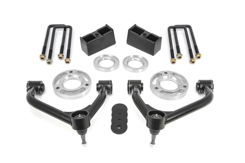 Last fall we announced our new leveling and SST lift kit offerings for the all-new GM 1500 trucks. We specifically did not include the factory lift kit-equipped GMC AT4 and Chevy Silverado Trail Boss. The AT4/Trail Boss are factory equipped with a 2" front lift. This front lift includes a longer front shock/strut assembly. When combining a traditional leveling kit on these factory lifted trucks, several issues present themselves including binding problems with the factory control arm ball joint and contact concerns with the lower strut/CV axle assembly. The 69-3920 SST Lift Kit works with the factory 2" front lift. This kit includes a top mount strut spacer along with a pre-load spacer to limit droop and the same premium grade upper control arms now available in our 66-3921 leveling kit. OE style 3" tall cast iron rear lift blocks and rear bump stop extension cups are also included to create a true AT4/Trail Boss-specific bolt-on lift kit that provides 2" of front lift and 1" of rear lift. This new lift kit concept is similar to our successful TRD Pro Plus 2 SST Lift Kit which is also engineered specifically to work with that factory OE suspension lift. Your trust in ReadyLIFT to provide high-quality, precision engineered products is extremely important to us. You can be assured that this all-new SST lift kits are the absolutely most reliable and best performing suspension upgrade option for the AT4/Trail Boss trucks. AT4 - Max tire 305/55-20, 20x9 0 offset wheel Trail Boss - Max tire 295/65-20, 20x9 0 offset wheel NOTE: Use of Auto 4 HI feature not recommended.. NOTE: This GM 1500 kit is NOT COMPATIBLE with vehicles equipped with rear composite mono-leaf springs. The mono-leaf is easily identifiable the U-bolt is round/circular around the top of the leaf spring. This kit only works with vehicle equipped with traditional steel leaf springs identified by square U-bolts. NOTE: Not compatible with Sierra AT4X or Silverado ZR2 Edition.