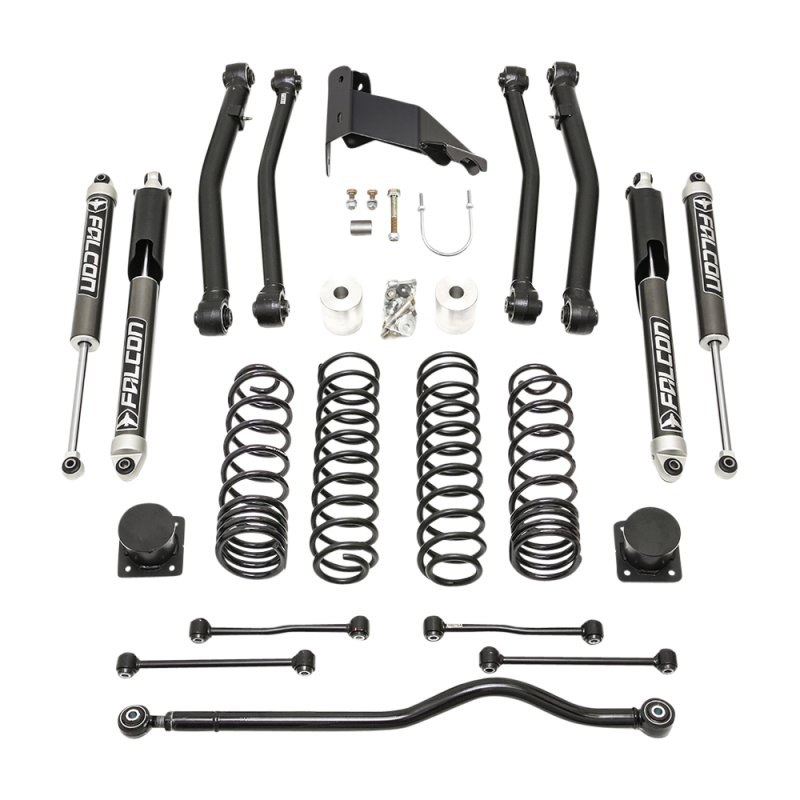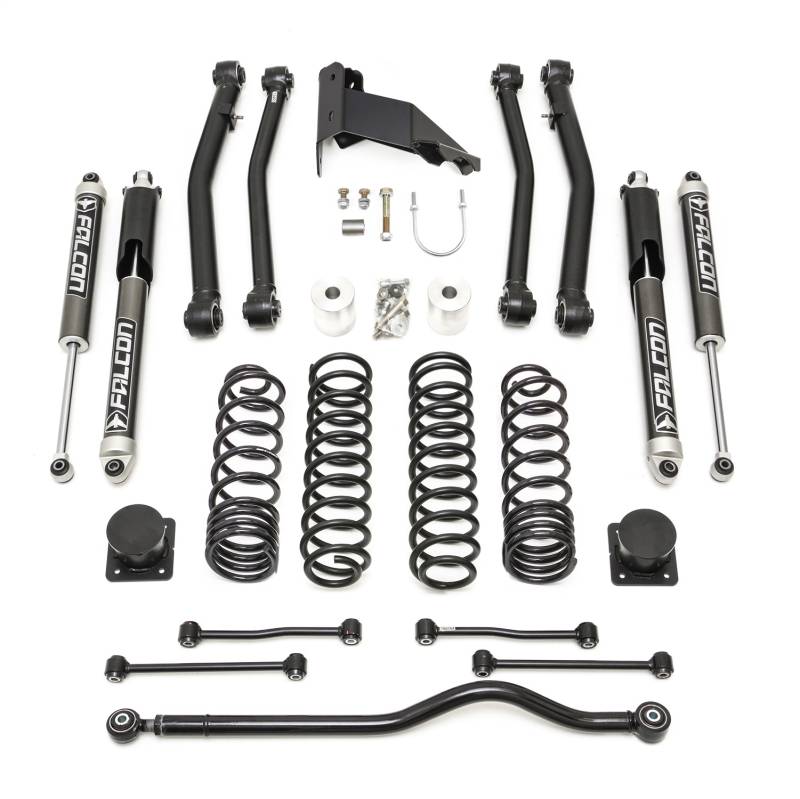 Introducing the enhanced 69-6042 4" Terrain Flex MAX lift kit for Jeep Gladiator enthusiasts. Building upon the popularity of our 4" Terrain Flex lift kit, this upgraded version offers several improvements for discerning customers. Key enhancements include linear rate rear coil springs perfectly matched with the front springs, ensuring a comfortable ride and exceptional articulation. The addition of a heavy-duty rear track bar bracket enhances rear axle alignment and overall suspension geometry performance. The 69-6042 lift kit elevates your Jeep Gladiator to a higher stance, accommodating up to 37" tall tires. Extensive engineering and rigorous testing, including interstate travel and extreme rock crawling adventures, have fine-tuned this system for a harmonious blend of on-road civility and off-road prowess. The kit features 4" lift replacement front and rear springs with a larger wire diameter, accommodating heavy aftermarket accessories such as winches and steel bumpers. Further enhancing performance, we introduce beefier .188 wall lower control arms with Terrain Control Technology (TCT) non-bonded, maintenance-free bushings, aiding in caster geometry while excelling both on and off-road. Longer sway bar end links, bump stop extensions, a heavy-duty rear track bar bracket, and an adjustable front track bar contribute to optimizing your Gladiator's ride and flexing capabilities. To complete the ultimate Terrain Flex Lift Kit, we've partnered with Falcon to include Falcon 2.1 mono tube performance shocks designed specifically for the JT Gladiator. The result is a remarkable 4" lift system that delivers improved on-road comfort and exceptional off-road performance. Please note that vehicles with adaptive cruise control will require zero-point calibration at the dealership post-installation, and this kit is not compatible with Wrangler or Gladiator optional powertrains, including the 3.0L Diesel, Rubicon 392, and 4xe editions.