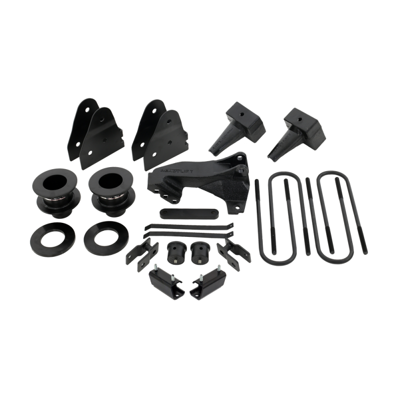 ReadyLIFT Suspension has engineered a line of suspension products made to fit the 2011-2016 Ford Super Duty equipped with diesel engines. Our 2011-2016 F250 4WD 3.5"F/1.5"-3.0"R SST Lift Kit provides the exact amount of front and rear lift while allowing for wheel and tire combinations up to 35" and keeping the smooth OEM ride and drivability. This ReadyLIFT SST Lift Kit is the perfect Lift Solution for the 2011-2016 Ford Super Duty trucks with a diesel engines and a two-piece drive shaft. Does not fit the 2011-2016 Super Duty with the 6.2 liter GASOLINE engine. The 69-2531 3.5"F/3.0"R SST Lift Kit includes 3.5" powdercoated steel coil spring spacers, sound isolators, shock extensions, sway bar frame mount spacers, bump stop extensions, carrier bearing spacer, track bar relocation bracket, radius arm drop brackets and OEM-style 5.0" Rear Lift Blocks for a great looking mild lift system that will maintain your factory ride! NOTE: This kit is for use on trucks with a two-piece drive shaft. If you have a one-piece drive shaft, use kit 69-2538. NOTE: The lift blocks in this kit are not designed to work with aftermarket or factory add-on air spring/load leveling kits that attach to the bump stop tangs. Use of this type of air bag system will void all block warranties and can cause failure of the block bump stop tang. Diesel engines only. Gas engine trucks will sit nose high. NOTE: Tow Package vehicles may require longer U-bolts or removal of top overload springs.