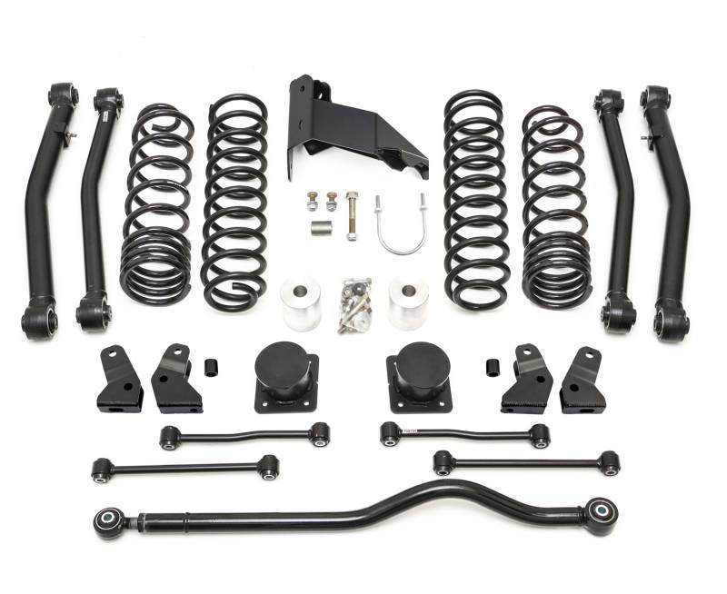 ReadyLIFT introduces the 69-6043 4" Mojave Terrain Flex Lift Kit designed exclusively for the Jeep Gladiator Mojave Edition. This sought-after lift kit is engineered to retain the factory-equipped FOX 2.5-inch internal bypass shocks with external reservoirs and FOX front hydraulic jounce bumpers, ensuring top-notch performance. It includes heavy-duty shock mount extensions, allowing you to fully utilize the FOX equipment in a lifted configuration. The kit boasts impressive features, including four heavy-duty Terrain Flex lower control arms with Terrain Control Technology (TCT) maintenance-free, non-bonded pivot bushings for exceptional articulation. Tuned 4" lift coil springs are integrated to enhance both on and off-road ride quality while maximizing articulation with the FOX shocks. Additionally, it comes with longer front and rear sway bar end links, an adjustable front track bar, and a robust rear track bar bracket to maintain proper suspension geometry. This Mojave lift kit shares many components with ReadyLIFT's popular Jeep Gladiator 4" lift kit. It also offers the exclusive capability of accommodating up to a 37+ inch tall tire on a 10" wide wheel with 0 mm offset, making it perfect for off-road enthusiasts. It's important to note that this kit is specifically designed for the Jeep Gladiator Mojave Edition and is not compatible with other optional powertrains such as the 3.0L Diesel, Rubicon 392, or 4xe editions in the Wrangler or Gladiator lineup. Elevate your Mojave Edition's performance and capability with the ReadyLIFT 69-6043 4" Mojave Terrain Flex Lift Kit.
