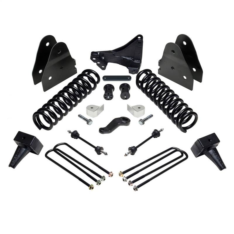 ReadyLIFT now offers a 6.5" Lift Kit system made yo fit 2017-2022 F250 Ford Super Duty 4WD trucks with a one-piece drive shaft. This 6.5" lift kit gives owners an excellent lift kit option that will raise F250 trucks a total of 6.5" in front. This provides for maximum tire clearance and unbeatable off-road performance. Install up to 38" tall off road tires with no problems. This new off road kit delivers uncompromised ride and handling performance! The 49-2765 6.5" Lift Kit includes custom wound coil springs engineered to provide an incredibly great ride while also enhancing off-road driving performance. The kit includes radius arm drop brackets allowing the use of factory radius arms and correcting caster in the process. To lift the rear we include fabricated rear lift blocks with off-set pin design to relocate the axle bringing the rear up level with the front while providing a factory-like ride. Other great components to this kit include a drop pitman arm, track bar bracket, sway bar end links, drive shaft spacer, and all hardware. NOTE: Longer shocks are required when using the this kit. ReadyLIFT SST3000 shock are available and sold separately. NOTE: For use with 1-piece drive shafts only. NOTE: Diesel engines only. NOTE: The lift blocks in this kit are not designed to work with aftermarket or factory add-on air spring/load leveling kits that attach to the bump stop tangs. Use of this type of air bag system will void all block warranties and can cause failure of the block bump stop tang.