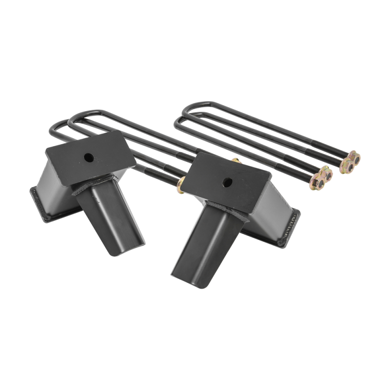 ReadyLIFT OEM-style rear block kits are now available for 2017-2022 Ford Super Duty model specific applications. These 5.0" fabricated steel Tapered Rear Block Kits include two (2) rear blocks, four (4) long e-coated U-bolts and eight (8) nuts and washers. Based on OEM designs and never made out of lightweight extrusions, our 5" 2017-2022 Ford Super Duty Tapered Rear Blocks have Integrated OEM style bump stops. ReadyLIFT Block Kits will put a slight rake back in your truck for hauling or towing and are designed to work with your ReadyLIFT Suspension Leveling Kit. In fact, these blocks are the ideal Tow Package upgrade for not only for stock-height vehicles but lifted or leveled trucks too! Like all ReadyLIFT products these block kits come with our Limited Lifetime Warranty. NOTE: 66-2750 5" block is for use on 2017-2022 Ford F250 Super Duty 4WD trucks with 1-piece drive shaft. Lift height will vary depending on what factory block your truck has. NOTE: Not for use on 2019-UP F350. NOTE: The lift blocks in this kit are not designed to work with aftermarket or factory add-on air spring/load leveling kits that attach to the bump stop tangs. Use of this type of air bag system will void all block warranties and can cause failure of the block bump stop tang.