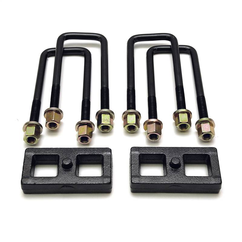 ReadyLIFT OEM-style rear block kits are available for 2004-2021 Nissan Titan applications. These Rear Block Kits include two (2) 1" Rear Blocks, four (4) E-Coated U-Bolts, eight (8) Nuts and Washers and will safely lift the rear of your Nissan Titan an additional 1". Based on OEM designs and made from cast iron (never made out of light weight extrusions). ReadyLIFT Block Kits will put a slight rake back in your truck for hauling or towing and are designed to work in concert with your ReadyLIFT Suspension Leveling Kit. This is a great Tow Package upgrade. Like all ReadyLIFT products, these block kits come with our Lifetime Warranty. NOTE: Not for use on Titan XD models