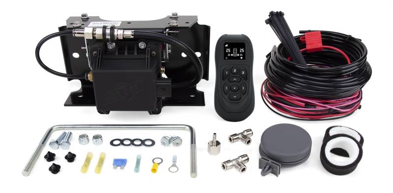 EZ Mount WirelessAIR (2nd Generation) Offering easy and convenient air pressure adjustment for any brand of aftermarket air spring, the WirelessAir on-board air compressor system from Air Lift is ideal for the elite air spring user. This dual-path WirelessAir(TM) allows users to inflate or deflate each air spring separately, this allows each air spring to be filled to different air pressures, to better handle uneven or top-heavy loads, all powered by a heavy-duty compressor. This second-generation system offers easy control of your air springs through an upgraded, wireless handheld controller or the new mobile app. Installing the system is simple, with no air line or wiring needing to be routed through the cab of the vehicle. The included wiring harness, installation hardware, and a fully illustrated instruction manual ensure that WirelessAir(TM) will be up and running in no time. WirelessAir(TM) is now available with the EZ Mount system, which packages the manifold and heavy-duty compressor into a factory-assembled and tested bracket, making installation even easier. Backed by Air Lift's two-year limited warranty and 60-day, no-questions-asked, money-back guarantee, WirelessAir(TM) can be purchased with peace of mind. Dual-path control of all brands of air springs Heavy-duty 120 PSI 1.03 CFM 9% duty cycle 12V air compressor Control your air springs individually from anywhere, at any time Compact, wireless handheld controller with LCD display, programmable with up to three user-defined presets and free iOS and Android mobile app easily connects with Bluetooth -enabled manifold New EZ Mount system packages the manifold and upgraded heavy-duty compressor into a factory-assembled bracket, making installation easier and quicker than ever
