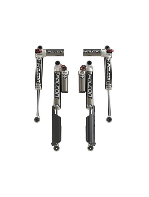Teraflex Falcon SP2 3.3 Fast Adjust Piggyback Shocks offer a wide range of adjustability with their easy to use 3-position Fast Adjust Knob. Settings include Soft, Custom, and Firm. The Custom setting incorporates an 8-position Micro Adjust Dial for more precise tuning between soft and firm. Our unique Mode Adjust feature tunes compression and rebound for Soft or Performance settings.