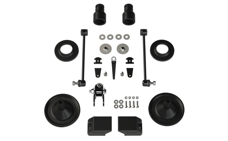 The TeraFlex JK: 2.5” Performance Spacer Lift Kit is the most economical way to fit larger tires and increase ground clearance with the least amount of modifications. Don’t let its affordability fool you; this 2.5” Performance Spacer Lift Kit includes the innovative TeraFlex spring retention spacer that prevents the spring from dropping out during extreme articulation.