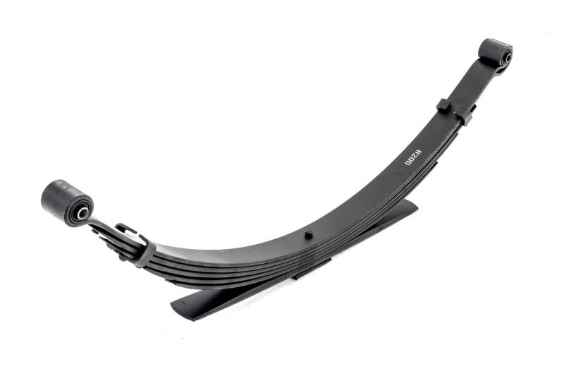 Added Lift Height and Ride Comfort. Take your suspension kit to the next level with Rough Country's Replacement Leaf Springs. Constructed from high-quality materials and designed specifically for the weight of your vehicle. This enhanced replacement spring will provide a factory-like feel while retaining your suspension lift height. \ Durable and Off-Road Ready. Rough Country's Replacement Leaf Springs are designed to tackle any terrain that they are faced with. Featuring a multi-leaf design and spring pads this reduces the friction and maximizes comfort. Each leaf pack utilizes tapered leaves for improved flexibility at their ends. \ Installation. Rough Country's Replacement Leaf Springs offer a 100% bolt-on installation estimated to take approximately 1-2 hours depending on vehicle condition. Simply remove the pre-existing leaf spring and use the stock hardware to equip your vehicle with this high-quality replacement. \ Lifetime Replacement Warranty. Rough Country's Replacement Leaf is backed with a 5-year replacement warranty towards manufacturer defects. As such, the product is protected from structural and workmanship damage after the date of purchase. With our industry-leading warranty give yourself peace of mind when using Rough Country's Suspension products!