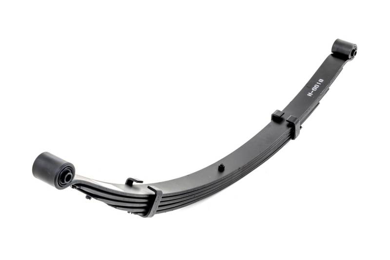 Added Lift Height and Ride Comfort. Take your suspension kit to the next level with Rough Country's Replacement Leaf Springs. Constructed from high-quality materials and designed specifically for the weight of your vehicle. This enhanced replacement spring will provide a factory-like feel while retaining your suspension lift height. \ Durable and Off-Road Ready. Rough Country's Replacement Leaf Springs are designed to tackle any terrain that they are faced with. Featuring a multi-leaf design and spring pads this reduces the friction and maximizes comfort. Each leaf pack utilizes tapered leaves for improved flexibility at their ends. \ Installation. Rough Country's Replacement Leaf Springs offer a 100% bolt-on installation estimated to take approximately 1-2 hours depending on vehicle condition. Simply remove the pre-existing leaf spring and use the stock hardware to equip your vehicle with this high-quality replacement. \ Lifetime Replacement Warranty. Rough Country's Replacement Leaf is backed with a 5-year replacement warranty towards manufacturer defects. As such, the product is protected from structural and workmanship damage after the date of purchase. With our industry-leading warranty give yourself peace of mind when using Rough Country's Suspension products!