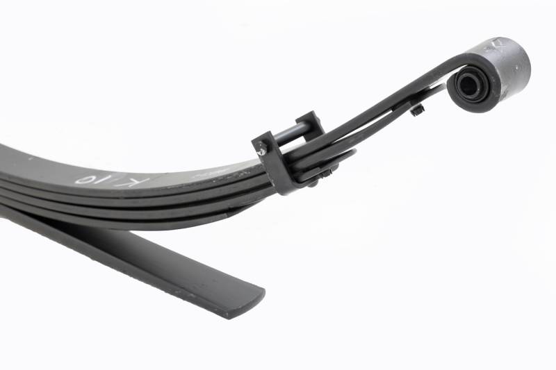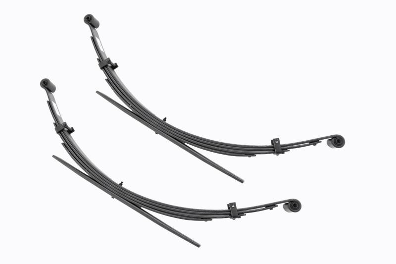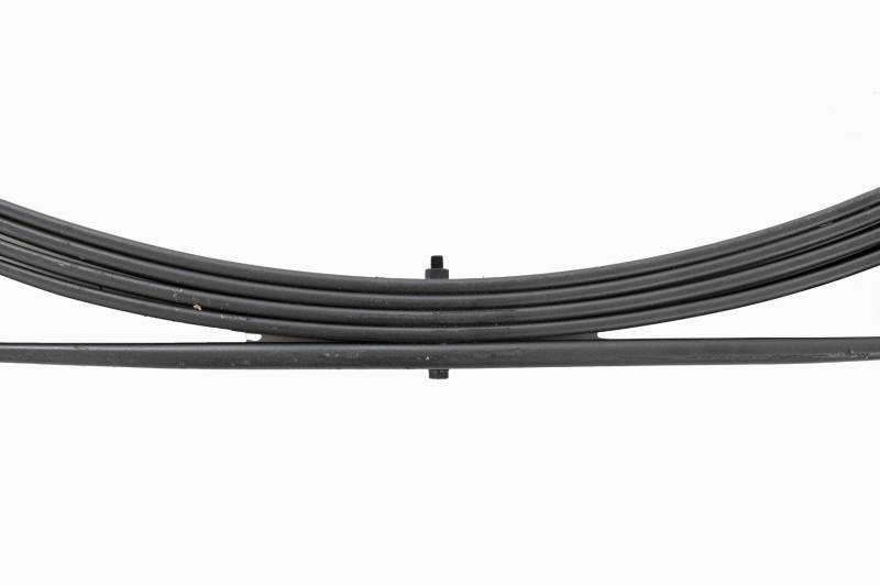 Added Lift Height and Ride Comfort. Take your suspension kit to the next level with Rough Country's Replacement Leaf Springs. Constructed from high-quality materials and designed specifically for the weight of your vehicle. This enhanced replacement spring will provide a factory-like feel while retaining your suspension lift height. \ Durable and Off-Road Ready. Rough Country's Replacement Leaf Springs are designed to tackle any terrain that they are faced with. Featuring a multi-leaf design and spring pads this reduces the friction and maximizes comfort. Each leaf pack utilizes tapered leaves for improved flexibility at their ends. \ Installation. Rough Country's Replacement Leaf Springs offer a 100% bolt-on installation estimated to take approximately 1-2 hours depending on vehicle condition. Simply remove the pre-existing leaf spring and use the stock hardware to equip your vehicle with this high-quality replacement. \ Lifetime Replacement Warranty. Rough Country's Replacement Leaf is backed with a 5-year replacement warranty towards manufacturer defects. As such, the product is protected from structural and workmanship damage after the date of purchase. With our industry-leading warranty give yourself peace of mind when using Rough Country's Suspension products!