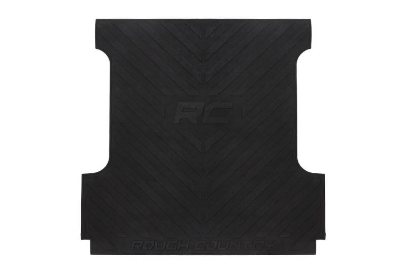 Innovative Design and Material. Keep your truck bed free from scuffs, scrapes, and scratches with Rough Country Truck Bed Mats. These heavy-duty, 3/8-inch thick, contoured rubber mats are nearly indestructible; made from a high-quality rubber compound that won’t crack in extreme temperatures or fade when exposed to the sun. This stylized bed mat features a large "RC" and "Rough Country" logo with angled lines for an improved look that also protects your truck bed.\ Installation. With a simple drop-in design, installation couldn't be easier. With an estimated timeframe of 10 minutes, this mat can be installed at home efficiently and quickly! Simply place the bed mat in, and roll it out and you're done!\ Limited Lifetime Replacement Warranty. Rough Country's bed mats are backed with a limited lifetime replacement warranty towards manufacturer defects. As such, the product is protected from structural and workmanship damage after the date of purchase. With our industry-leading warranty give yourself peace of mind when using Rough Country products!
