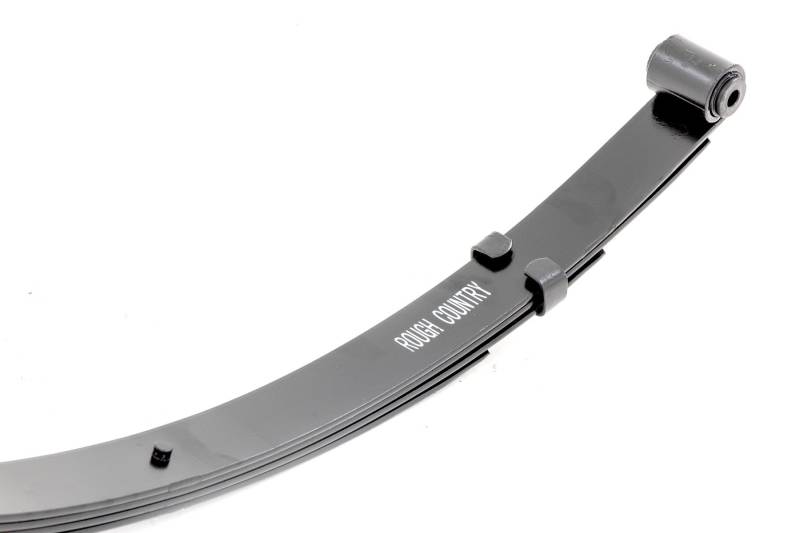 Added Lift Height and Ride Comfort. Take your suspension kit to the next level with Rough Country's Replacement Leaf Springs. Constructed from high-quality materials and designed specifically for the weight of your vehicle. This enhanced replacement spring will provide a factory-like feel while retaining your suspension lift height. \ Durable and Off-Road Ready. Rough Country's Replacement Leaf Springs are designed to tackle any terrain that they are faced with. Featuring a multi-leaf design and spring pads this reduces the friction and maximizes comfort. Each leaf pack utilizes tapered leaves for improved flexibility at their ends. \ Installation. Rough Country's Replacement Leaf Springs offer a 100% bolt-on installation estimated to take approximately 1-2 hours depending on vehicle condition. Simply remove the pre-existing leaf spring and use the stock hardware to equip your vehicle with this high-quality replacement. \ Lifetime Replacement Warranty. Rough Country's Replacement Leaf is backed with a 5-year replacement warranty towards manufacturer defects. As such, the product is protected from structural and workmanship damage after the date of purchase. With our industry-leading warranty give yourself peace of mind when using Rough Country's Suspension products!
