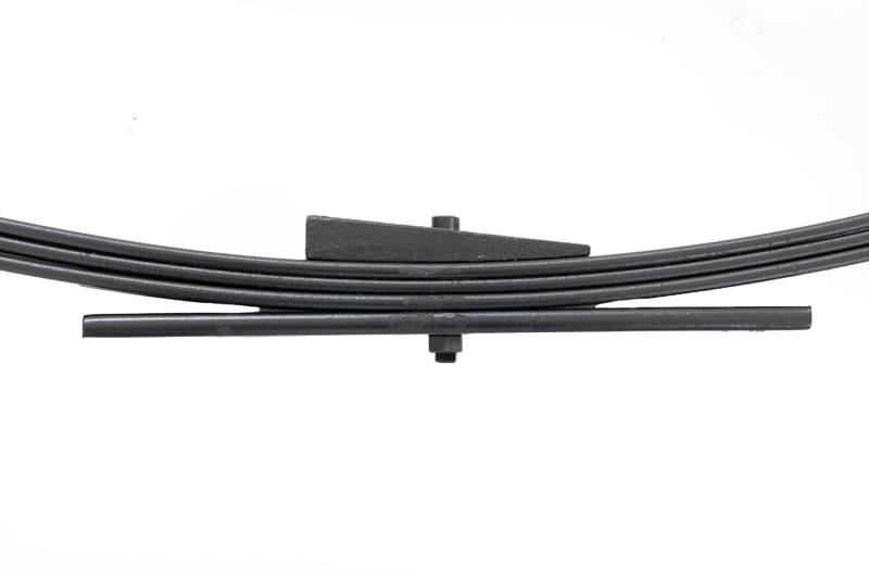 Added Lift Height and Ride Comfort. Take your suspension kit to the next level with Rough Country's Replacement Leaf Springs. Constructed from high-quality materials and designed specifically for the weight of your vehicle. This enhanced replacement spring will provide a factory-like feel while retaining your suspension lift height. \ Durable and Off-Road Ready. Rough Country's Replacement Leaf Springs are designed to tackle any terrain that they are faced with. Featuring a multi-leaf design and spring pads this reduces the friction and maximizes comfort. Each leaf pack utilizes tapered leaves for improved flexibility at their ends. \ Installation. Rough Country's Replacement Leaf Springs offer a 100% bolt-on installation estimated to take approximately 1-2 hours depending on vehicle condition. Simply remove the pre-existing leaf spring and use the stock hardware to equip your vehicle with this high-quality replacement. \ Lifetime Replacement Warranty. Rough Country's Replacement Leaf is backed with a 5-year replacement warranty towards manufacturer defects. As such, the product is protected from structural and workmanship damage after the date of purchase. With our industry-leading warranty give yourself peace of mind when using Rough Country's Suspension products!