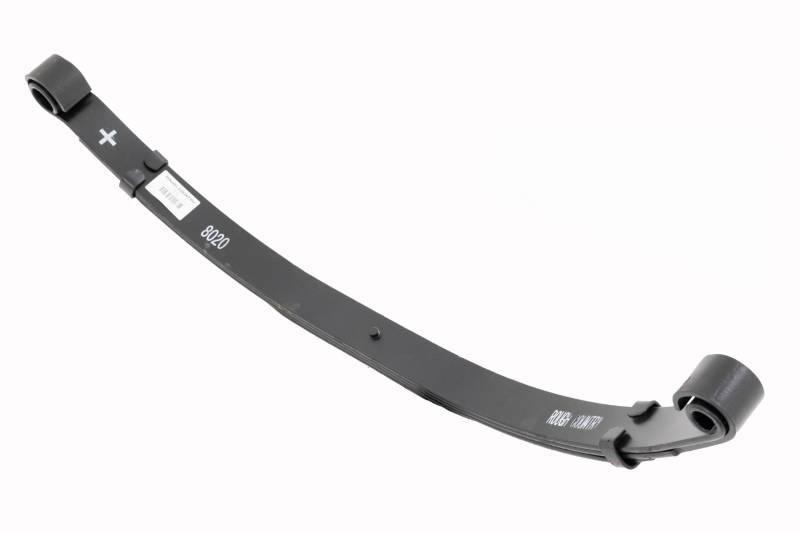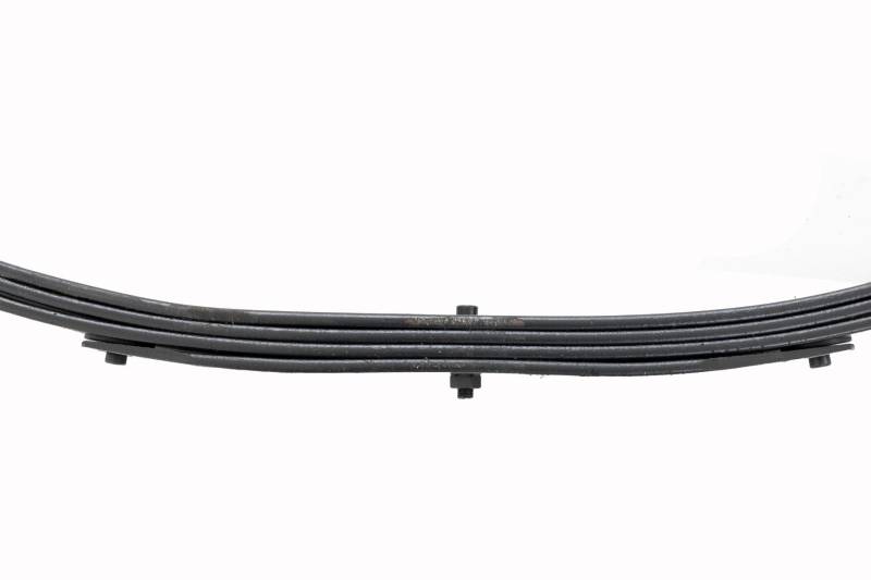 Added Lift Height and Ride Comfort. Take your suspension kit to the next level with Rough Country's Replacement Leaf Springs. Constructed from high-quality materials and designed specifically for the weight of your vehicle. This enhanced replacement spring will provide a factory-like feel while retaining your suspension lift height. \ Durable and Off-Road Ready. Rough Country's Replacement Leaf Springs are designed to tackle any terrain that they are faced with. Featuring a multi-leaf design and spring pads this reduces the friction and maximizes comfort. Each leaf pack utilizes tapered leaves for improved flexibility at their ends. \ Installation. Rough Country's Replacement Leaf Springs offer a 100% bolt-on installation estimated to take approximately 1-2 hours depending on vehicle condition. Simply remove the pre-existing leaf spring and use the stock hardware to equip your vehicle with this high-quality replacement. \ Lifetime Replacement Warranty. Rough Country's Replacement Leaf is backed with a 5-year replacement warranty towards manufacturer defects. As such, the product is protected from structural and workmanship damage after the date of purchase. With our industry-leading warranty give yourself peace of mind when using Rough Country's Suspension products!