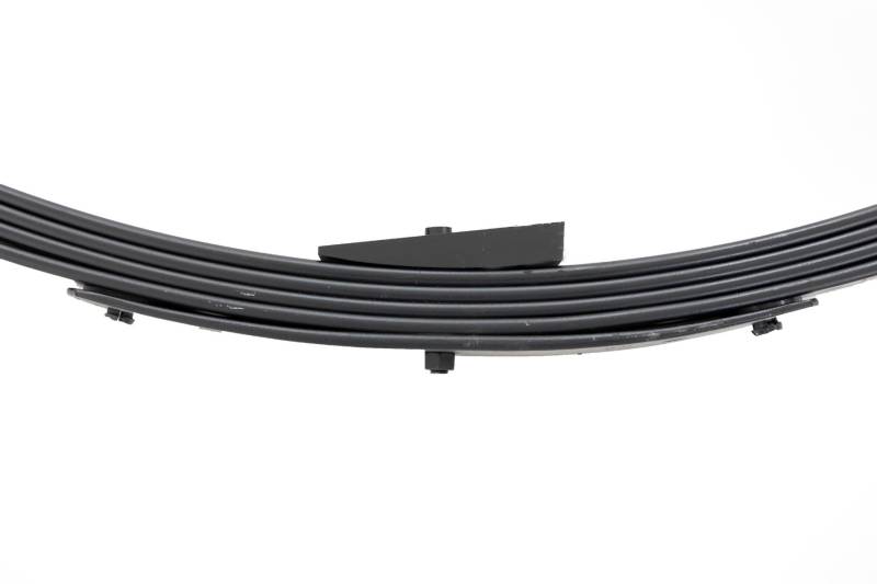 Added Lift Height and Ride Comfort. Take your suspension kit to the next level with Rough Country's Replacement Leaf Springs. Constructed from high-quality materials and designed specifically for the weight of your vehicle. This enhanced replacement spring will provide a factory-like feel while retaining your suspension lift height. \ Durable and Off-Road Ready. Rough Country's Replacement Leaf Springs are designed to tackle any terrain that they are faced with. Featuring a multi-leaf design and spring pads this reduces the friction and maximizes comfort. Each leaf pack utilizes tapered leaves for improved flexibility at their ends. \ Installation. Rough Country's Replacement Leaf Springs offer a 100% bolt-on installation estimated to take approximately 1-2 hours depending on vehicle condition. Simply remove the pre-existing leaf spring and use the stock hardware to equip your vehicle with this high-quality replacement. \ Lifetime Replacement Warranty. Rough Country's Replacement Leaf is backed with a 5-year replacement warranty towards manufacturer defects. As such, the product is protected from structural and workmanship damage after the date of purchase. With our industry-leading warranty give yourself peace of mind when using Rough Country's Suspension products!