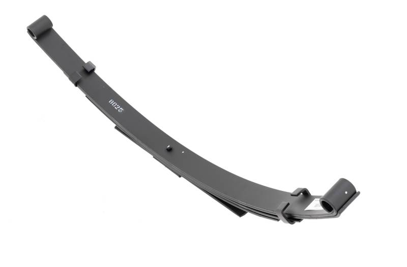 Added Lift Height and Ride Comfort. Take your suspension kit to the next level with Rough Country's Replacement Leaf Springs. Constructed from high-quality materials and designed specifically for the weight of your vehicle. This enhanced replacement spring will provide a factory-like feel while retaining your suspension lift height. \ Durable and Off-Road Ready. Rough Country's Replacement Leaf Springs are designed to tackle any terrain that they are faced with. Featuring a multi-leaf design and spring pads this reduces the friction and maximizes comfort. Each leaf pack utilizes tapered leaves for improved flexibility at their ends. \ Installation. Rough Country's Replacement Leaf Springs offer a 100% bolt-on installation estimated to take approximately 1-2 hours depending on vehicle condition. Simply remove the pre-existing leaf spring and use the stock hardware to equip your vehicle with this high-quality replacement. \ Lifetime Replacement Warranty. Rough Country's Replacement Leaf is backed with a 5-year replacement warranty towards manufacturer defects. As such, the product is protected from structural and workmanship damage after the date of purchase. With our industry-leading warranty give yourself peace of mind when using Rough Country's Suspension products!