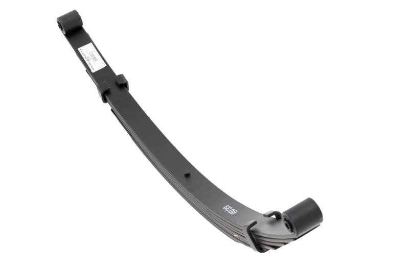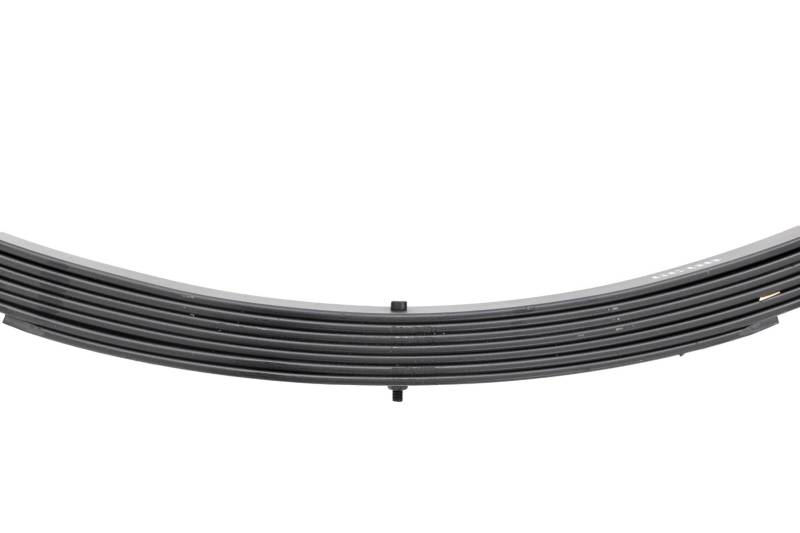 Added Lift Height and Ride Comfort. Take your suspension kit to the next level with Rough Country's Replacement Leaf Springs. Constructed from high-quality materials and designed specifically for the weight of your vehicle. This enhanced replacement spring will provide a factory-like feel while retaining your suspension lift height. \ Durable and Off-Road Ready. Rough Country's Replacement Leaf Springs are designed to tackle any terrain that they are faced with. Featuring a multi-leaf design and spring pads this reduces the friction and maximizes comfort. Each leaf pack utilizes tapered leaves for improved flexibility at their ends. \ Installation. Rough Country's Replacement Leaf Springs offer a 100% bolt-on installation estimated to take approximately 1-2 hours depending on vehicle condition. Simply remove the pre-existing leaf spring and use the stock hardware to equip your vehicle with this high-quality replacement. \ Lifetime Replacement Warranty. Rough Country's Replacement Leaf is backed with a 5-year replacement warranty towards manufacturer defects. As such, the product is protected from structural and workmanship damage after the date of purchase. With our industry-leading warranty give yourself peace of mind when using Rough Country's Suspension products!