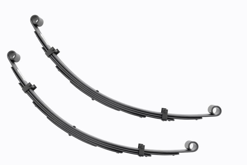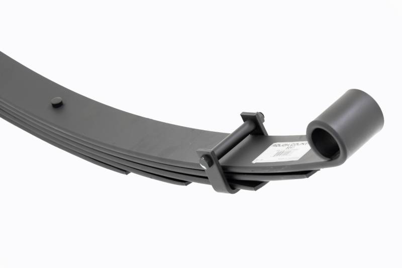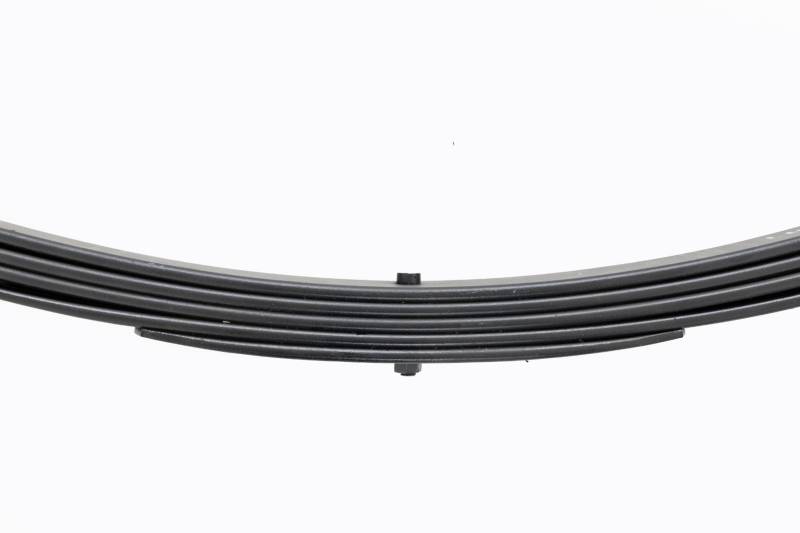 Added Lift Height and Ride Comfort. Take your suspension kit to the next level with Rough Country's Replacement Leaf Springs. Constructed from high-quality materials and designed specifically for the weight of your vehicle. This enhanced replacement spring will provide a factory-like feel while retaining your suspension lift height. \ Durable and Off-Road Ready. Rough Country's Replacement Leaf Springs are designed to tackle any terrain that they are faced with. Featuring a multi-leaf design and spring pads this reduces the friction and maximizes comfort. Each leaf pack utilizes tapered leaves for improved flexibility at their ends. \ Installation. Rough Country's Replacement Leaf Springs offer a 100% bolt-on installation estimated to take approximately 1-2 hours depending on vehicle condition. Simply remove the pre-existing leaf spring and use the stock hardware to equip your vehicle with this high-quality replacement. \ Lifetime Replacement Warranty. Rough Country's Replacement Leaf is backed with a 5-year replacement warranty towards manufacturer defects. As such, the product is protected from structural and workmanship damage after the date of purchase. With our industry-leading warranty give yourself peace of mind when using Rough Country's Suspension products!