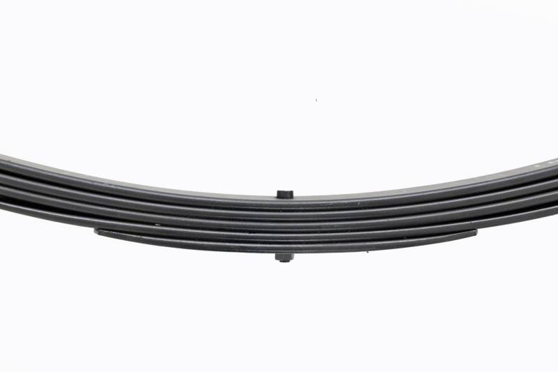 Added Lift Height and Ride Comfort. Take your suspension kit to the next level with Rough Country's Replacement Leaf Springs. Constructed from high-quality materials and designed specifically for the weight of your vehicle. This enhanced replacement spring will provide a factory-like feel while retaining your suspension lift height. \ Durable and Off-Road Ready. Rough Country's Replacement Leaf Springs are designed to tackle any terrain that they are faced with. Featuring a multi-leaf design and spring pads this reduces the friction and maximizes comfort. Each leaf pack utilizes tapered leaves for improved flexibility at their ends. \ Installation. Rough Country's Replacement Leaf Springs offer a 100% bolt-on installation estimated to take approximately 1-2 hours depending on vehicle condition. Simply remove the pre-existing leaf spring and use the stock hardware to equip your vehicle with this high-quality replacement. \ Lifetime Replacement Warranty. Rough Country's Replacement Leaf is backed with a 5-year replacement warranty towards manufacturer defects. As such, the product is protected from structural and workmanship damage after the date of purchase. With our industry-leading warranty give yourself peace of mind when using Rough Country's Suspension products!