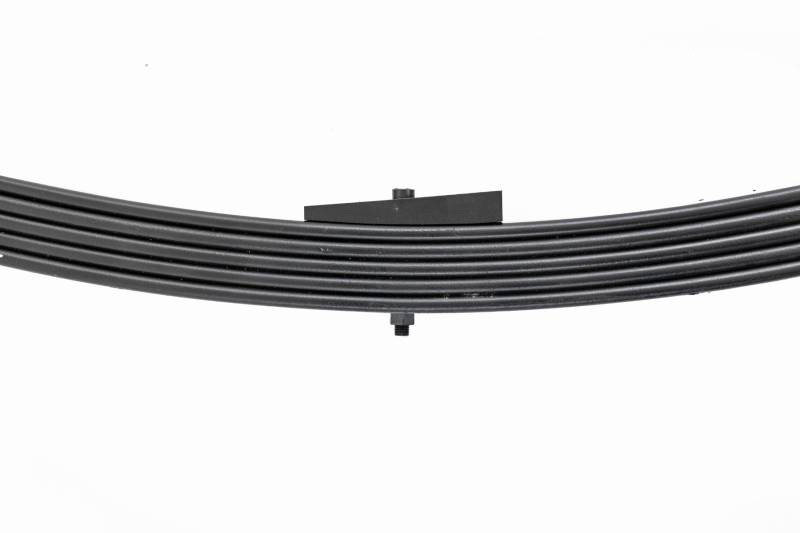 Added Lift Height and Ride Comfort. Take your suspension kit to the next level with Rough Country's Replacement Leaf Springs. Constructed from high-quality materials and designed specifically for the weight of your vehicle. This enhanced replacement spring will provide a factory-like feel while retaining your suspension lift height. Durable and Off-Road Ready. Rough Country's Replacement Leaf Springs are designed to tackle any terrain that they are faced with. Featuring a multi-leaf design and spring pads this reduces the friction and maximizes comfort. Each leaf pack utilizes tapered leaves for improved flexibility at their ends. Installation. Rough Country's Replacement Leaf Springs offer a 100% bolt-on installation estimated to take approximately 1-2 hours depending on vehicle condition. Simply remove the pre-existing leaf spring and use the stock hardware to equip your vehicle with this high-quality replacement. Lifetime Replacement Warranty. Rough Country's Replacement Leaf is backed with a 5-year replacement warranty towards manufacturer defects. As such, the product is protected from structural and workmanship damage after the date of purchase. With our industry-leading warranty give yourself peace of mind when using Rough Country's Suspension products!