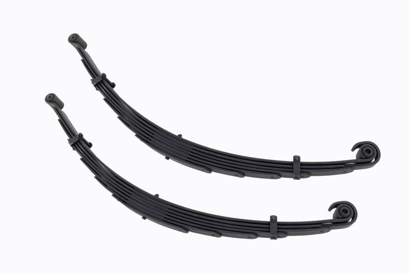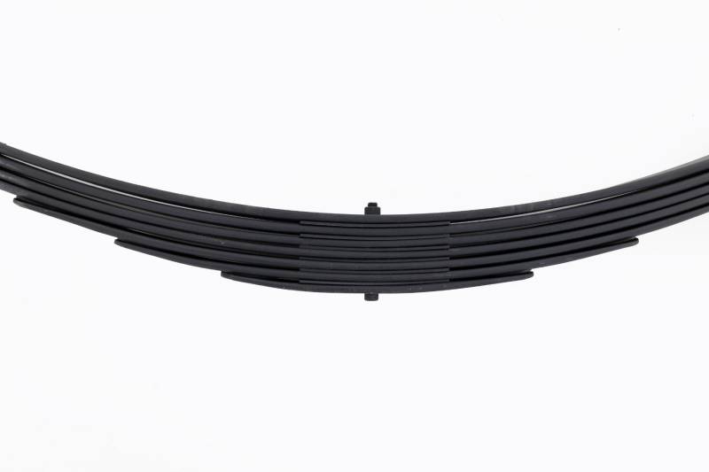 Added Lift Height and Ride Comfort. Take your suspension kit to the next level with Rough Country's Replacement Leaf Springs. Constructed from high-quality materials and designed specifically for the weight of your vehicle. This enhanced replacement spring will provide a factory-like feel while retaining your suspension lift height.?á\ Durable and Off-Road Ready. Rough Country's Replacement Leaf Springs are designed to tackle any terrain that they are faced with. Featuring a multi-leaf design and spring pads this reduces the friction and maximizes comfort. Each leaf pack utilizes tapered leaves for improved flexibility at their ends.?á\ Installation. Rough Country's Replacement Leaf Springs?áoffer a 100% bolt-on installation estimated to take approximately 1-2 hours depending on vehicle condition. Simply remove the pre-existing leaf spring and use the stock hardware to equip your vehicle with this high-quality replacement.?á\ Lifetime Replacement Warranty. Rough Country's Replacement Leaf is backed with a 5-year replacement warranty towards manufacturer defects. As such, the product is protected from structural and workmanship damage after the date of purchase. With our industry-leading warranty give yourself peace of mind when using Rough Country's Suspension products!?á