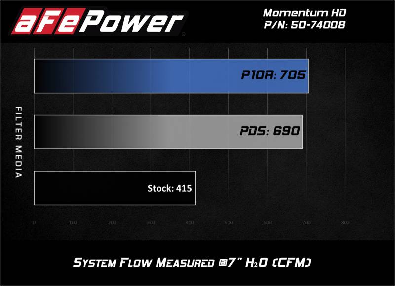 Unique One-Piece High Quality Housing W/ Sight Window: A custom CAD designed roto-molded housing made from heat soak resistant material eliminates the use of multiple components and ensures the coolest air intake charge available. A large clear sight window allows for filter inspection without removal of the air box. The roto-molded housing is made out of black cross-linked polyethylene. A urethane plug is also included if you wish to block off the auxiliary air inlet. High Quality Tube: This system uses a high quality plastic CAD designed, dyno-tuned, roto-molded designed intake tube to fit with the stock mechanical fan and achieve maximum power gains while maintaining a perfect fit. Huge Pro DRY S Performance Air Filter: The Momentum HD is designed around a massive Pro DRY S performance 360 degree radial flow air filter with 3-layers of progressive synthetic media providing 99.2% cumulative efficiency. The unique filter-to-housing interface (patent pending) allows for maximum filter size which increases the available air volume while simplifying the installation process. The air filter is wrapped in reinforced metal providing maximum strength to prevent filter collapse. Premium Hardware: High quality premium clamps ensures the most secure installation available. Momentum intakes are designed with fewer parts for a quick and simple installation.