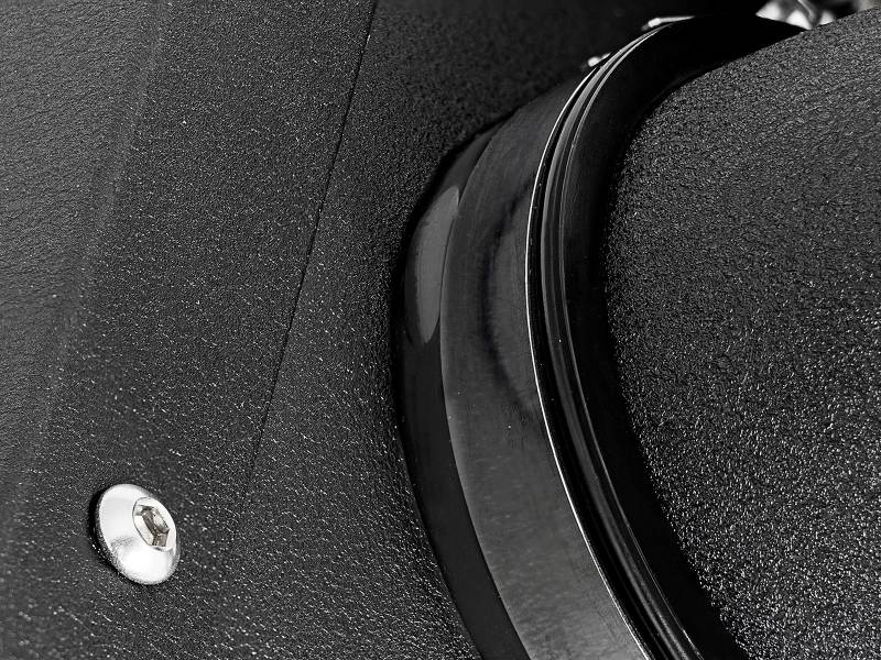 This sealed intake system utilizes pre-oiled, large 7" tall radial flow performance air filters with 5-layers of progressive finer mesh cotton media providing maximum airflow and performance. Also included is a Magnum SHIELD Pre-filters to protect your performance air filter from water splash or heavy rainstorms. Dual Mandrel-bent Wrinkle-black Powder-coated aluminum intake tubes are designed with an H-pipe to balance intake tube pressure and maximizes airflow and velocity. aFe developed this wrin kle-black powder-coated aluminum heat shield to snap onto the top of the lower half of the factory air box to provide a hassle-free installation utilizing factory mounting locations. An aluminum cover is used to finish off this intake and add a sense of style to your engine bay.