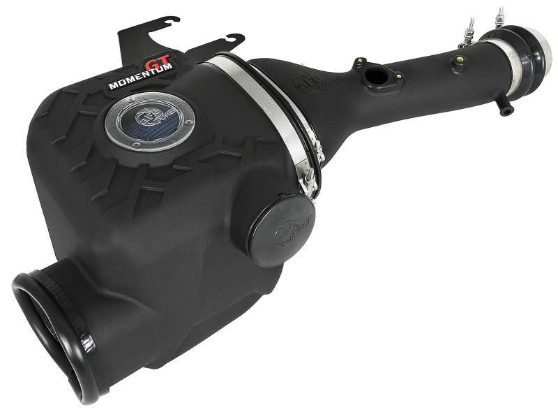 Bringing you the next generation of intakes, aFe is proud to introduce the Momentum GT Sealed intake system for the 2012-2015 Toyota Tacoma with the V6 4.0L engine. The Momentum GT sealed air intake system is designed using the most up-to-date engineering tools and techniques to provide you with the perfect blend of power and protection. This system is superior in every way. From the one-piece sealed housing, to the massive air filter, rotomolded tube premium hardware. Unique One-Piece Housing: The smooth one-piece sealed housing with auxiliary air scoop is used to eliminate the use of multiple-piece housings and ensure the coolest air intake charge available. A urethane plug is also included for those cold weather applications where you want to block the auxiliary air scoop. Roto-molded Tube: This System uses a CAD designed, dyno-tuned, roto-molded intake tube to achieve maximum power gains while maintaining a perfect fit. Large 5-Layer Performance Air Filter: This Momentum GT intake system was designed around the largest filter possible to allow maximum performance and filtration. This cone inverted top filter has a massive round flange and is 8" tall inverted top Pro 5R media. The Pro 5R performance air filter features 5-layers of progressive finer mesh cotton media providing maximum airflow and performance. The unique air filter to housing interface (patent pending) allows for maximum filter size which increases the available air volume while simplifying the installation process. Premium Hardware: Premium stainless steel T-bolt clamps are used to securely mount the high flow air filter to the 1-piece airbox. Momentum GT intakes are designed with fewer parts for a quick and simple installation.