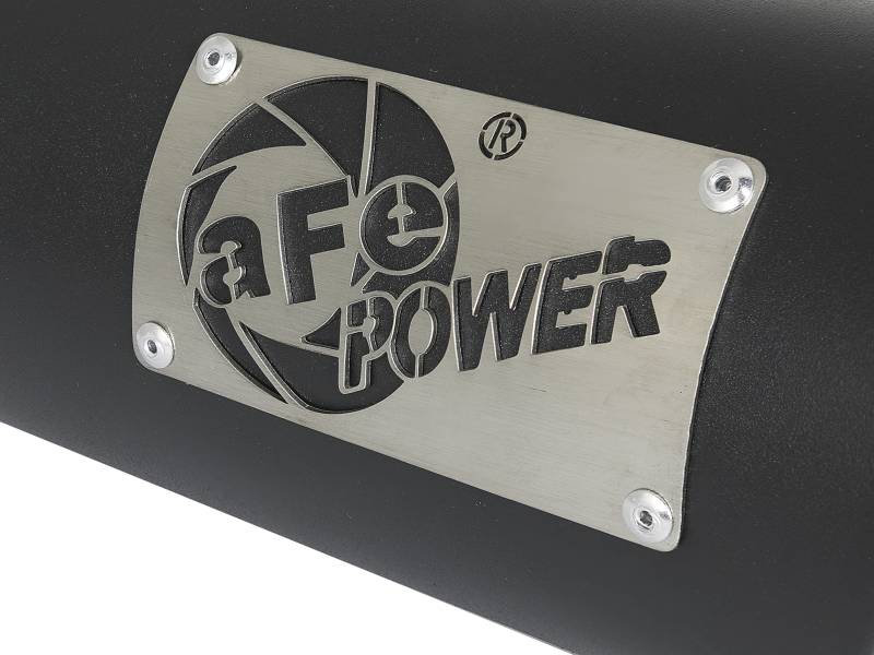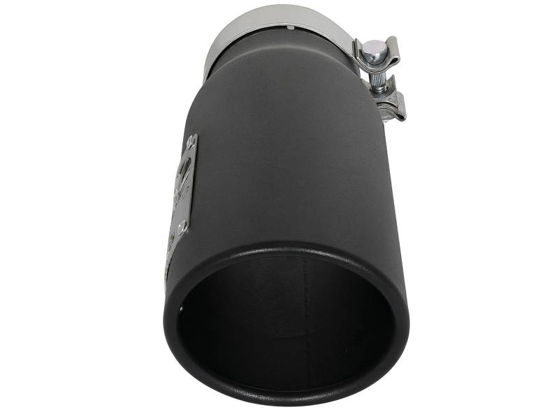 aFe Power is proud to introduce the all new diesel exhaust tip. This tip comes with a black finish and is designed to fit 3-1/2" exhaust systems. With a 3-1/2" inlet x 4-1/2" outlet and 12" inch length, this single-walled, angle cut rolled tip comes with a unique laser-cut aFe Power logo plate riveted on for an aggressive style. Leak-Free Seal: A high quality stainless steel band clamp is used for a complete 360 degree sealing surface. aFe Badging: The exhaust tip comes with a unique laser-cut aFe Power logo plate riveted on for an aggressive style.