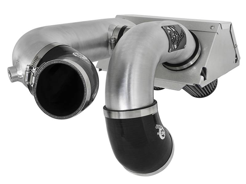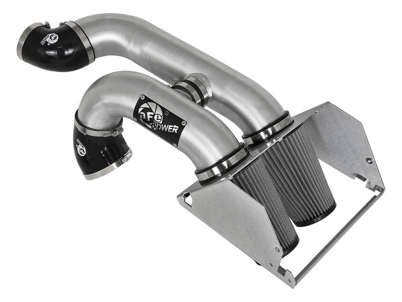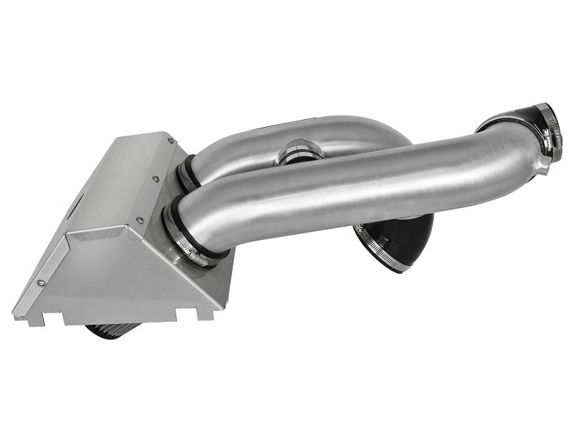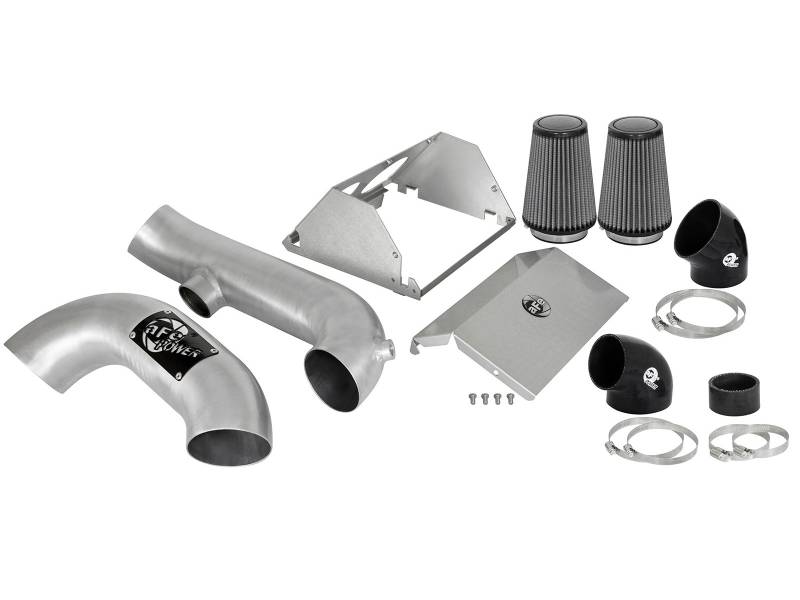 Dual Inlet Large 3-Layer "Oil-Free" Performance Air Filters: This intake system utilizes oil-free, large 7" tall radial flow performance air filters with 3-Layer progressively finer porosity synthetic media for maximum convenience. Top Mounted Heat Shield Design: aFe developed this aluminum heat shield to snap onto the top of the lower half of the factory air box to provide a hassle-free installation utilizing factory mounting locations. Aluminum Cover: An aluminum cover is used to finish off this intake and add a sense of style to your engine bay. Equal Length Intake Tubes: Dual mandrel-bent brushed aluminum equal length intake tubes are designed with an H-pipe to balance intake tube pressures and maximizes airflow and velocity. Hassle-Free Installation: All clamps, couplings, and hardware are included for hassle-free installation. This is a direct bolt-on kit that requires no cutting or drilling on factory parts. Note: This product is not currently CARB exempt and is not available for sale in California or for use on any vehicle registered with the California Department of Motor Vehicle.