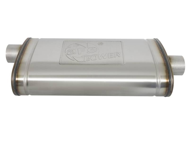 The aFe Universal fit 409 Stainless Steel Performance Muffler is designed to provide a deep, throaty, powerful sound on acceleration but maintain a smooth sound at idle. This muffler is constructed of brushed finished 409 stainless steel and uses a straight through perforated core with heat resistant packing to reduce backpressure and maximize exhaust flow. You will see increased performance and improved throttle response over the factory exhaust. Also featuring a stamped aFe Power logo for an aggressive style.