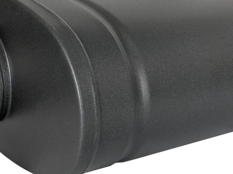 aFe's Mach Force Xp muffler designed to provide a deep, throaty, powerful sound on acceleration yet maintains a smooth sound at idle. Constructed of 409 stainless steel, the Mach Force Xp muffler uses a straight through perforated core with heat resistant packing to reduce backpressure and maximize exhaust flow for performance and sound improvements over the factory exhaust. Stainless Steel Construction Constructed of 409 stainless steel for long lasting strength and durability. High-Temperature, Metallic Black Powder Coating Helps prevent corrosion, deepen the exhaust tone and give it a custom look . Design and Sound Designed for exhaust gasses to travel straight through the heat resistant perforated core for a remarkable tone. Universal Fit Universal muffler fits 3" stainless steel tubing. Muffler does not come slotted. Muffler Specifications Configuration: 3" Center Inlet / 3" Offset Outlet. Size: 22" body length x 11" width x 5" height oval body, unslotted. Stamped with an aFe POWER Logo Features an aFe POWER logo stamped onto the muffler for quality, brand authenticity.