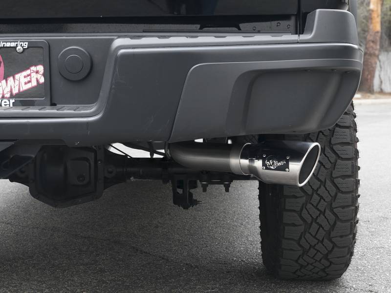 The aFe MACH Force-Xp cat-back exhaust system exceeds your quality and performance expectations. Mandrel bent 409 stainless steel tubing and high flow transverse muffler offers maximum exhaust flow and incorporates a factory style exhaust valve to control the exhaust note. The valve utilizes the factory valve motor and factory performance modes. When closed, it directs the exhaust through the high flow muffler for a smooth, tuned exhaust note. When opened, the exhaust is allowed to bypass the muffler and unleash sound and performance. Large diameter stainless steel exhaust tips come with a laser-etched aFe POWER logo for a stylish finish.