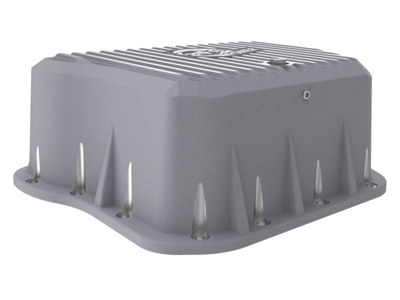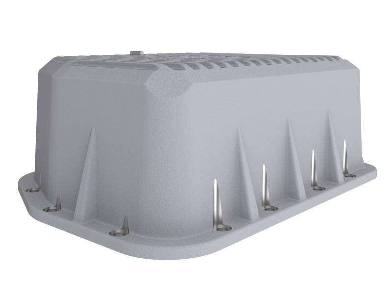 aFe POWER Street Series deep transmission pan brings performance engineering to the protection of your trucks transmission. This transmission pan has additional capacity for 3 to 4 more quarts over stock at the factory line, a magnetic drain plug and a 1/8" NPT port for your temperature sensor. Built-in internal and external fins transfer heat from the fluid to the outside air for maximum cooling. This transmission pan is constructed out of durable die-cast A380 aluminum with reinforced ribs and a raw finish with machined accents for maximum strength and styling.
